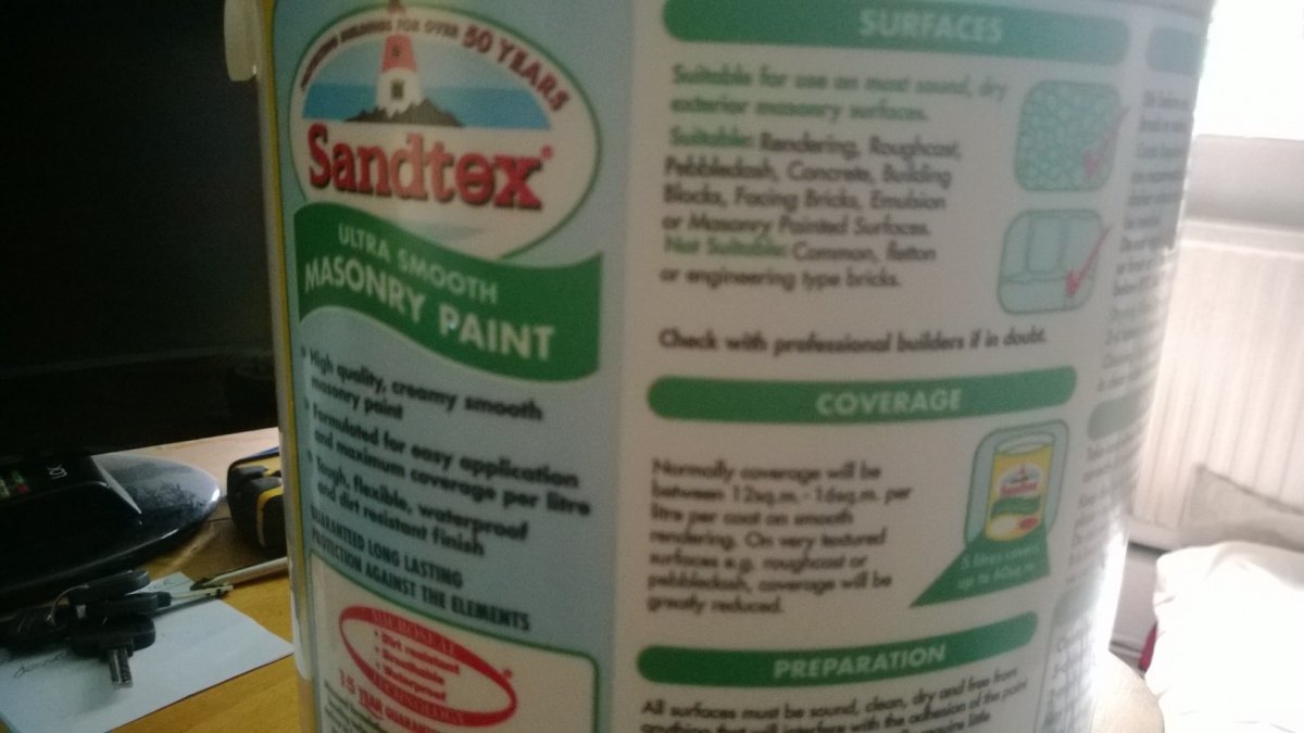 Dirt resistant breathable and waterproof our ultra smooth masonry paint uses microseal technology to give. Sandtex smooth masonry paint vermont grey 5ltr (101jf). Find a collection of highly durable masonry paint, ideally used for. Sandtex microseal ultra smooth masonry paint provides ultimate protection via its flexible coating which resists peeling, cracking and flaking. I initially bought the dulux weathershield masonry paint in the colour concrete grey (as seen in the last photo). I was not too happy with the hint of blue . Buy grey masonry paints at screwfix.com. Greysand dunescarecrowslate greysoft whitestone harboursunburstterracotta . Delivery 7 days a week. We stock the latest big brands! This paint is dirt resistant and waterproof almost immediately. Free delivery when you spend over £50 on wallpaper, dulux, johnstone's & harris. Sandtex 5l slate grey smooth masonry paint.